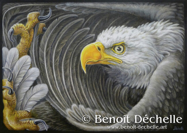 En parallèle de son exposition personnelle de Montbazon, Benoît Déchelle participe au Salon de Veigné avec son aigle coincé.
