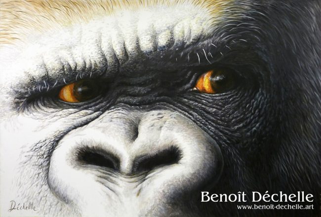 « Regard de gorille » – Toile réalisée à Villevêque en 2014 et retouchée en 2016