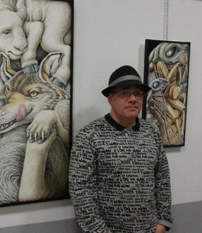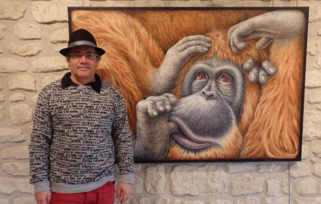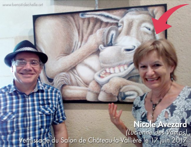 Au 14e Salon de Bueil-en-Touraine (37), Benoît Déchelle expose une toile de sa nouvelle série sur les Fables de La Fontaine.