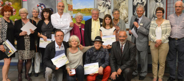 Lors de la cérémonie de clôture du Salon de Bueil-en-Touraine (37) ce dimanche, Benoît Déchelle a reçu le prix de la peinture à l’eau pour son acrylique « Rhinocéros coincé ».