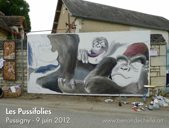 Ce jeudi de l’Ascension, se déroulait la Journée des peintres à Lavardin, un des plus beaux villages de France. Benoît Déchelle a puisé dans le patrimoine local – en l’occurrence le château – pour le confronter avec le monde animal.