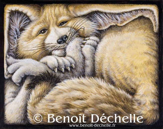 Fennec coincé – Acrylique sur toile – 33 x 41 cm – Collection particulière