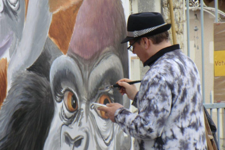 Une cinquantaine d’artistes exposent en plein air lors de la 10e édition du Jardin extraordinaire à Perruson les 12, 13 et 14 juillet 2013. L’orang-outan de Benoît Déchelle est du voyage.