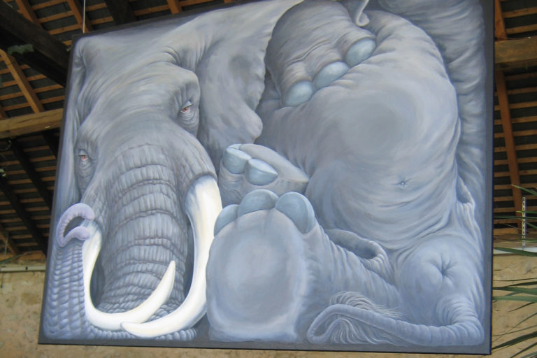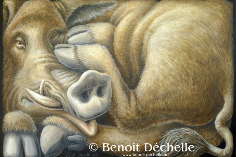 Prochaine étape à Parçay-Meslay au salon de peintures et sculptures. Deux nouvelles toiles pour l’occasion, deux animaux qui ne sont pas faits pour s’entendre.