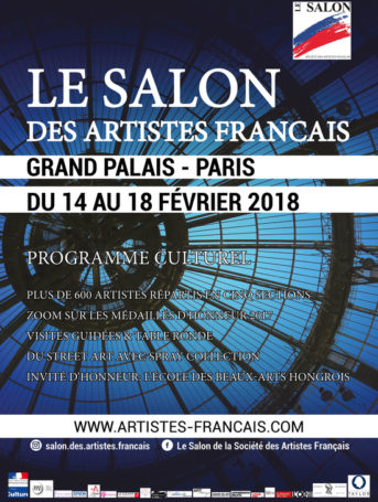 Après le vernissage d’hier, le Salon des Artistes Français installé au Grand Palais ouvre ses portes au public du mercredi 14 au dimanche 18 février 2018 de 11h à 20h – Nocturnes les jeudi 15 et samedi 17 jusqu’à 22h.