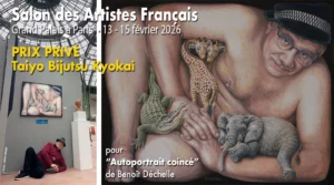 DISTINCTION pour la toile « AUTOPORTRAIT COINCÉ” de Benoît Déchelle au Salon des Artistes Français 2026 avec le PRIX TAIYO BIJUTSU KYOKAI, un des prix privé les mieux dotés du salon.