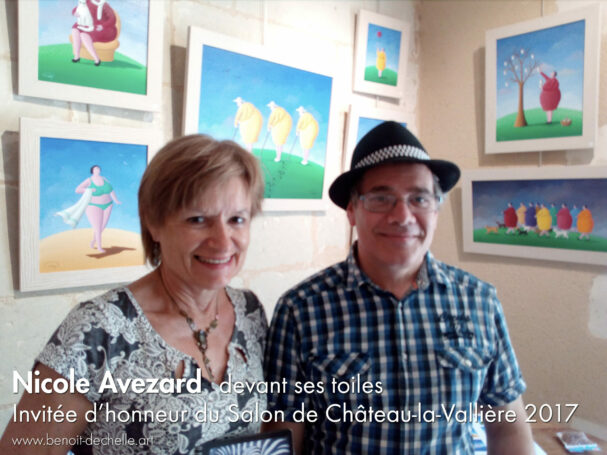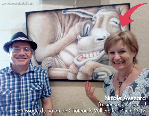 Invitée d’honneur et membre du jury du Salon de Château-la-Vallière (37), Nicole AVEZARD, peintre et comédienne (Lucienne des Vamps) s’est amusée de l’Âne coincé de Benoît Déchelle, Médaille de bronze de cette 34e édition.