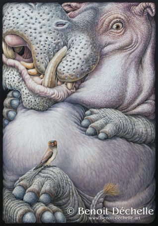 Après son gorille coincé, qui avait obtenu une médaille de bronze lors du salon précédent, c’est l’hippopotame coincé (162 x 114 cm) de Benoît Déchelle qui fait le voyage au Grand Palais des Champs Elysées à Paris pour ce 227e Salon des Artistes Français. Le salon se tient du mardi 14 au dimanche 19 février 2017 dans le cadre d’Art Capital.