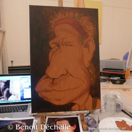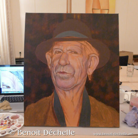 En octobre 2012, Benoît Déchelle participe au Workshop de Sebastian Krüger à Barsinghausen en Allemagne. Outre l’opportunité de voir au travail cet impressionnant artiste, cet atelier permet à Benoît de se confronter à Keith Richards, le thème fétiche de Sebastian. Deux toiles du guitariste leader des Stones, une caricature et un portrait marquent ce moment inoubliable pour le peintre.